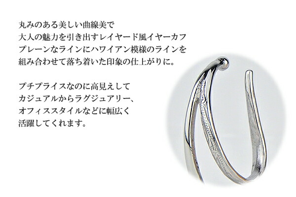 ハワイアンジュエリー イヤーカフ 片耳用 サージカルステンレス レイヤード風 流行り 高見え レディース イヤカフ プチプライス 重ねづけ 女性 ウェアリング ノンホール イヤリング 金属アレルギー対応 大人 シンプル henoheno ブランド