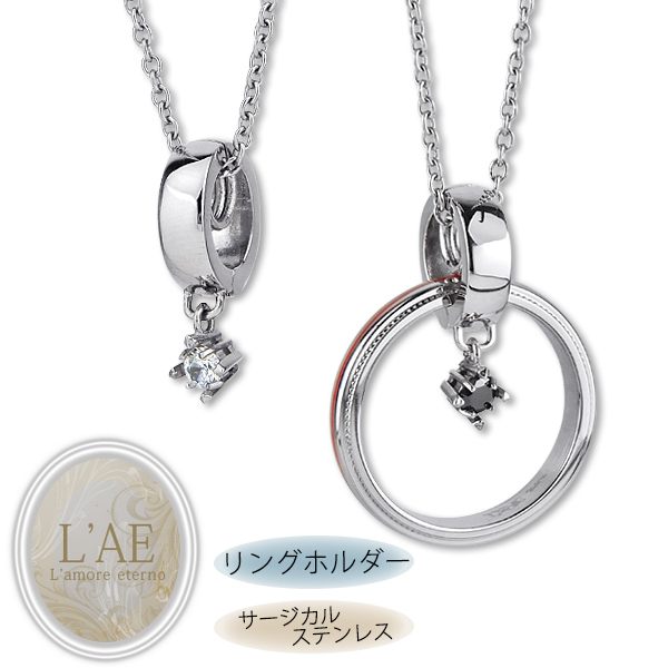 リングホルダー ネックレス ホワイトジルコニア ブラックジルコニア チャーム 指輪をネックレスに通す リング 指輪 金属アレルギー ステンレス サージカルステンレス メンズ レディース 男性 女性 ペンダント プレゼント ギフト つけっぱなし