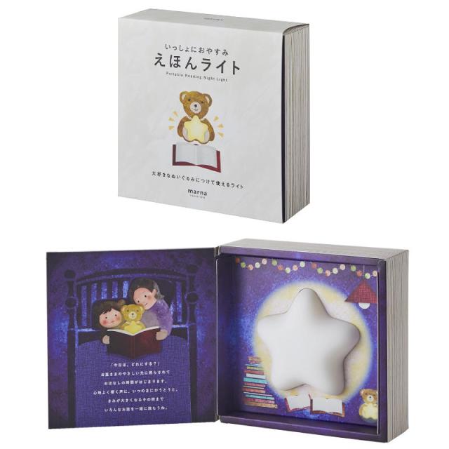お子さまのお気に入りのぬいぐるみに付けられる、就寝前の絵本の読み聞かせ時のほんわか光が欲しいときに便利なえほんライト。