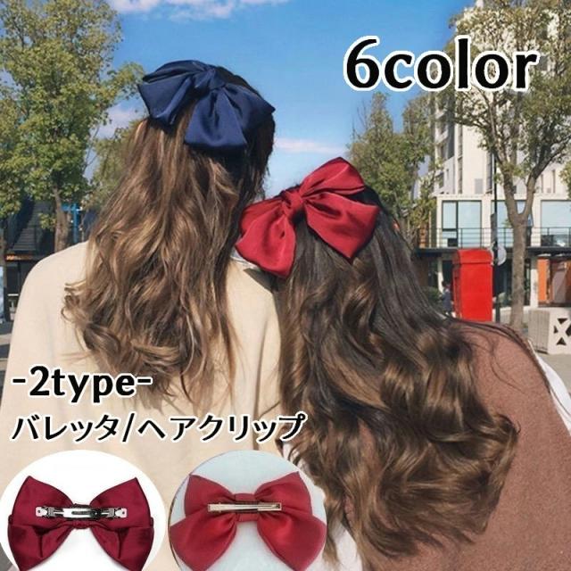 バレッタ ヘアクリップ 髪留め レディース 女性 婦人用 子供用 ヘアアクセサリー サテン調 リボン 蝶結び 光沢 上品 エレガ