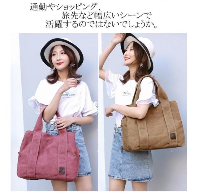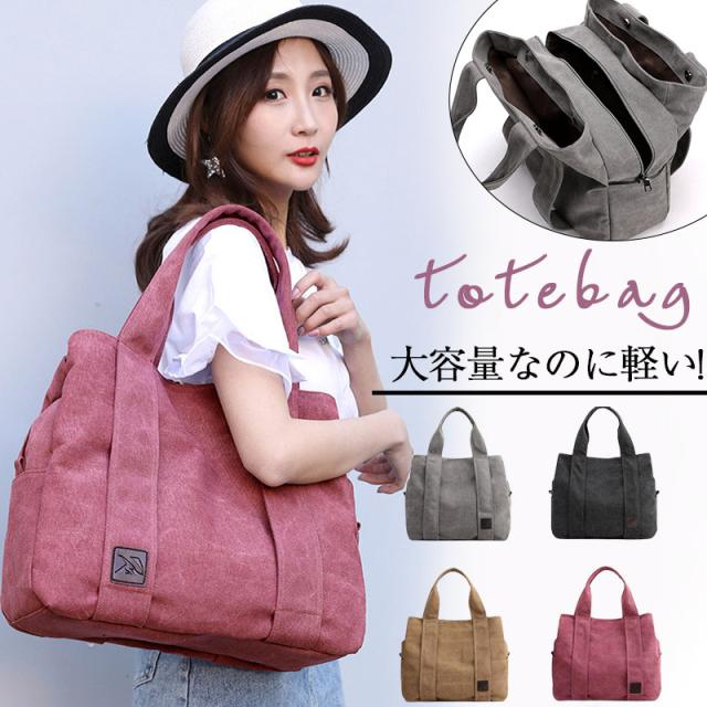 ポイント超超祭 トートバッグ ショルダー 帆布 A4 B5 3つ仕切り 肩掛け バッグ レディース キャンパス 手提げ 旅行 修学 大容量 鞄 通勤 通学 おしゃれ