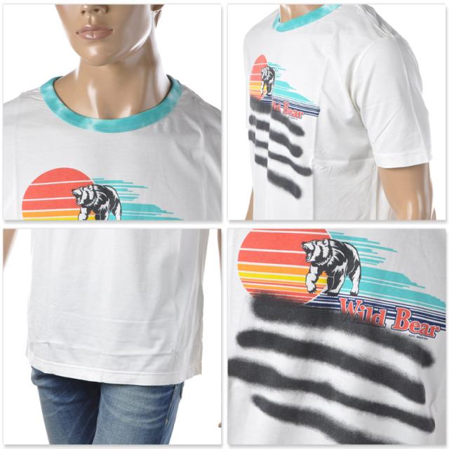ディーゼル DIESEL Tシャツ メンズ 半袖 カットソー クルーネック ホワイト 白 ロゴ タイダイ プリント コットン T-JUST-C1 A03773-0TDAN カジュアル 人気 ブランド おしゃれ