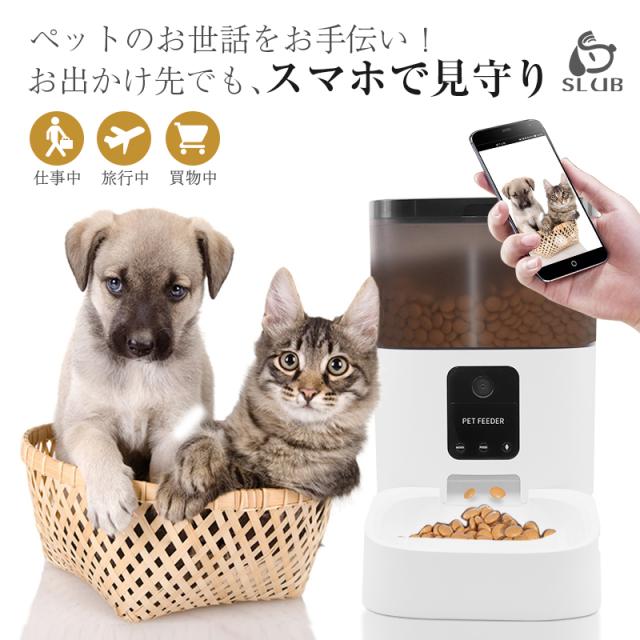 ペット自動給餌器 4L容量 カメラ搭載 1日8食 留守番対策 乾燥剤入り2WAY給電 カメラ付きペット給餌器 音声録音機能搭載 送料無料