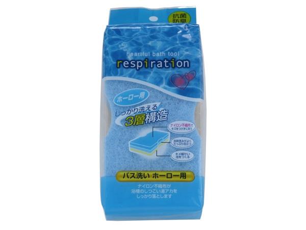 バス洗いスポンジ ホーロー用 respiration 抗菌・防臭 8.5×16×厚み4.5cm (100円ショップ 100円均一 100均一 100均)