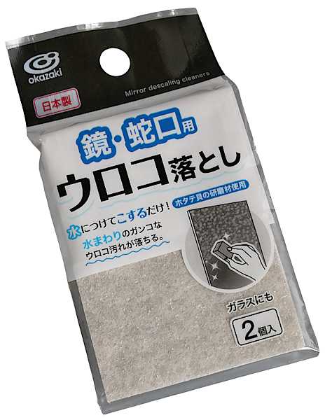 水をつけてこするだけで鏡・蛇口・ガラスなどのウロコ汚れを落とします。