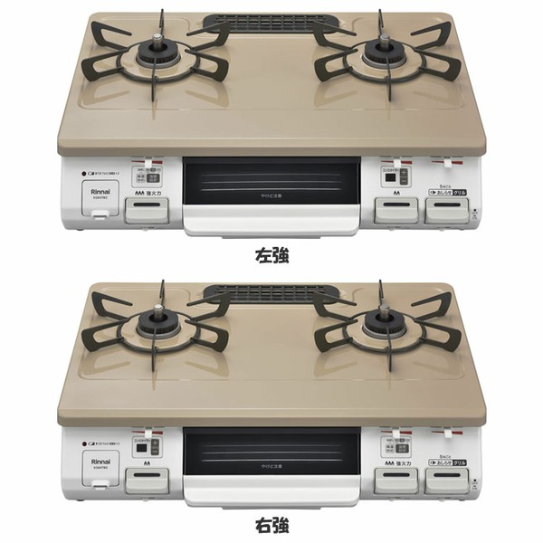 【工事不要】 リンナイ ガスコンロ 2口 水無し片面焼グリル 幅60cm 都市ガス LPガス 左強火力 右強火力 温度調節機能付き 全4種類 ガステーブル ワンピーストップ パールクリスタル天板 LPG 送料無料 KG64TW2 ピュアベージュ