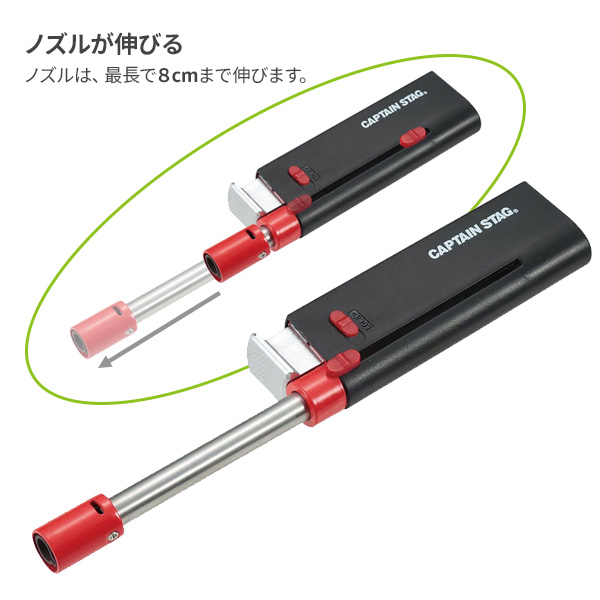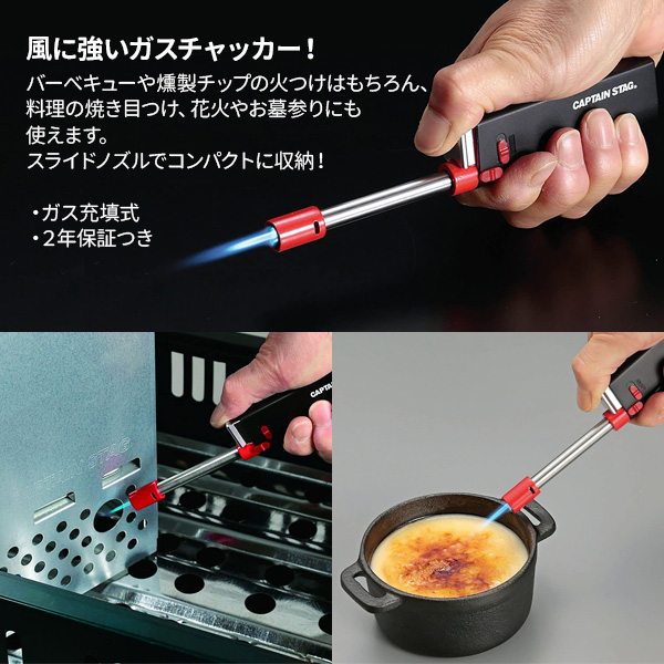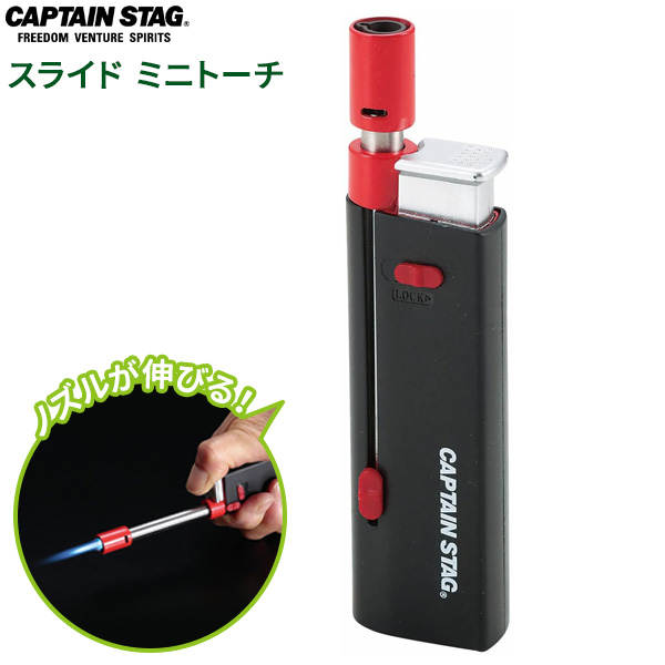 CAPTAIN STAG スライド ミニトーチ UF-16 | トーチ チャッカー スライドノズル 着火 バーナー 風に強い 焼き目つけ ガス充填式 炭 スモークウッド 木材 ろうそく