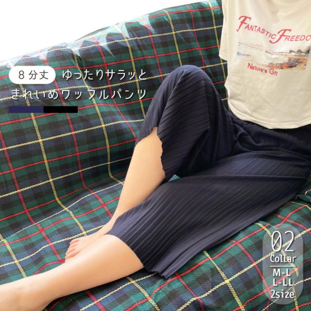 メール便1足まで ワッフルパンツ ルームパンツ ワッフル生地 8分丈 ワイドパンツ 涼感 きれいめ スタイル レッグスタイル レガルト
