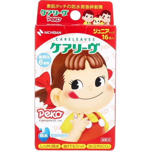 絆創膏 防水 ケアリーヴ キャラクター ペコちゃん 子供用 ジュニアサイズ 16枚入