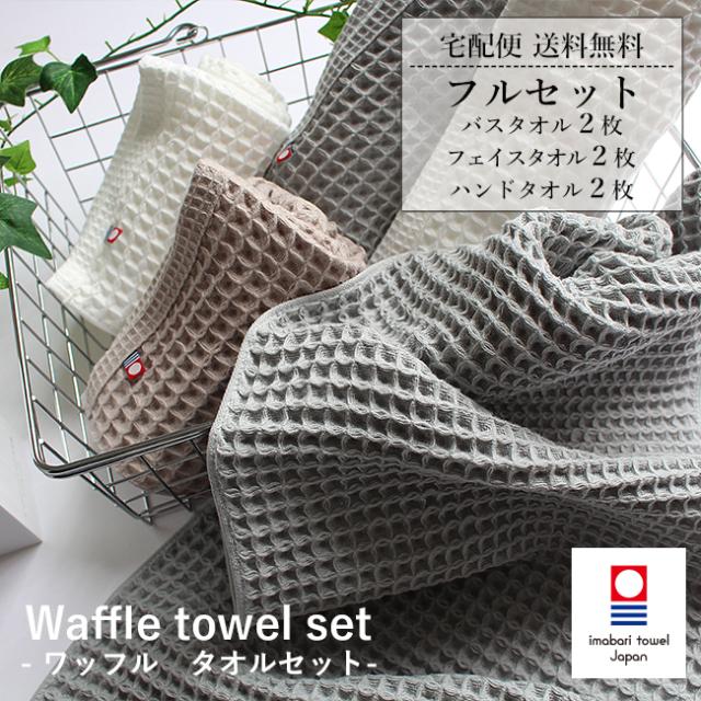ワッフル タオルセット 今治タオル バスタオル2枚 フェイスタオル2枚 ハンドタオル2枚 タオルフルセット まとめ買い ギフト おしゃれ 速乾 綿100% 日本製 引っ越し 挨拶 タオル メール便送料無料 出産祝い 内祝い 人気 waffle waffletowel