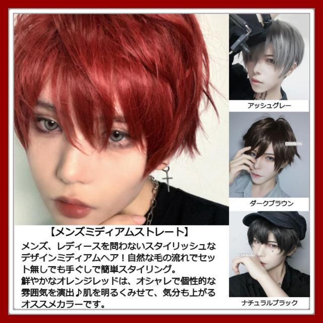 翌日出荷 フルウィッグ ミディアム ヘア オレンジ レッド 医療用 かつら ネット付き 自然 小顔