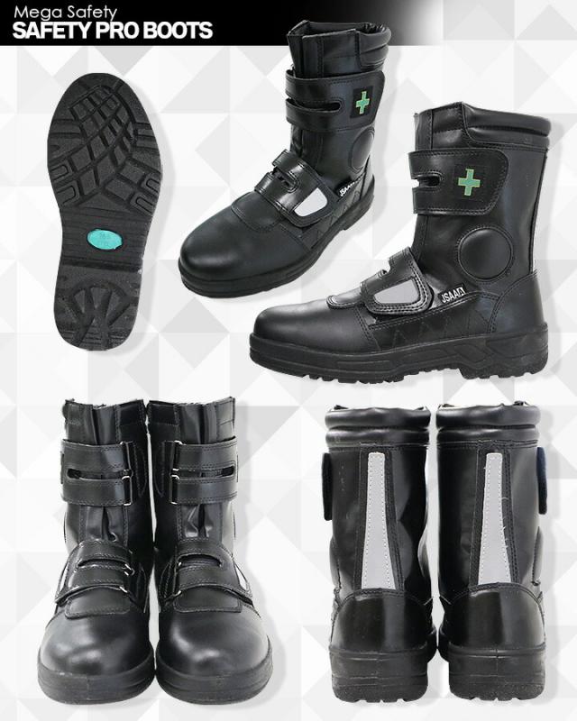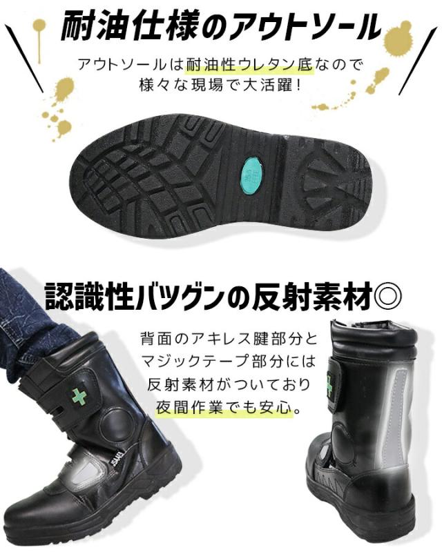 安全靴 ブーツタイプ 長靴 耐油 鋼製先芯 制菌 消臭 セーフティスブーツ ProBoots MK-7855 マジックタイプ 反射 クッション性 安全靴 セーフティシューズ 喜多
