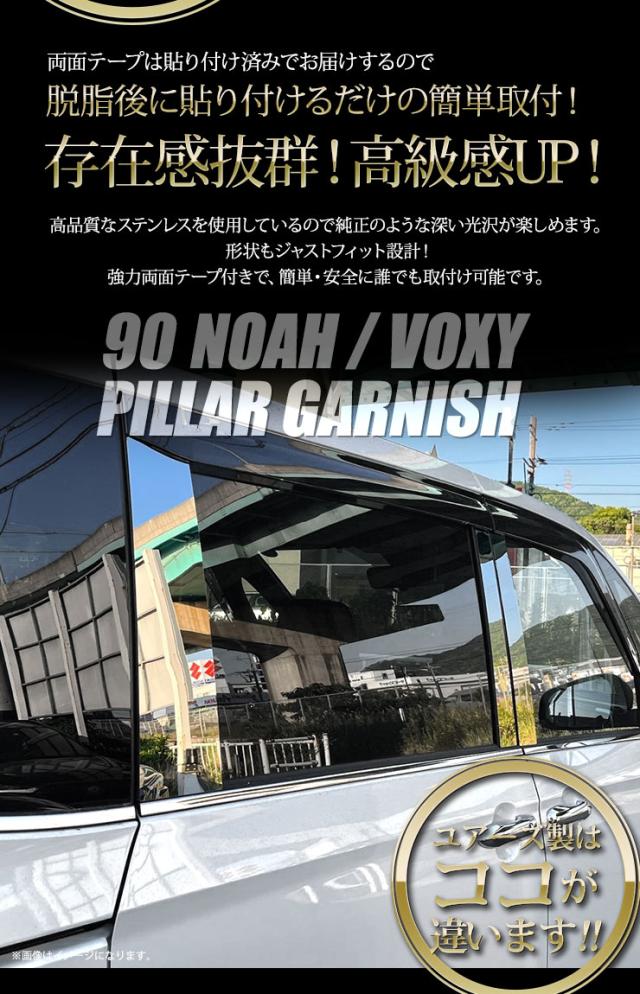 90系 ヴォクシー ノア 専用 メッキピラーガーニッシュ [6PCS] 90 VOXY NOAH 90ヴォクシー 90ノア メッキ 鏡面 パーツ ドアピラー ガーニッシュ ステンレス ドレスアップ トヨタ TOYOTA