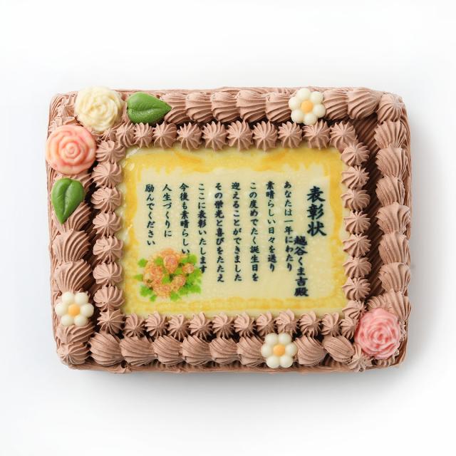 賞状ケーキチョコ6号 14×18cm【送料無料】80文字程度お好みのメッセージが入れられる写真ケーキです! フォトケーキ