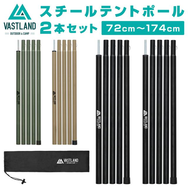VASTLAND テントポール タープポール スチール 2本セット 最長174cm 直径16mm 収納袋付き