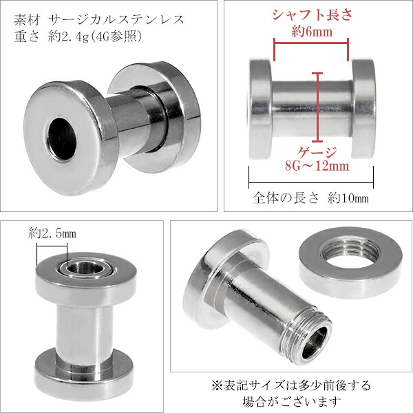ステンレス フレッシュトンネル ボディピアス 8G〜12mm (1P/1個売り)