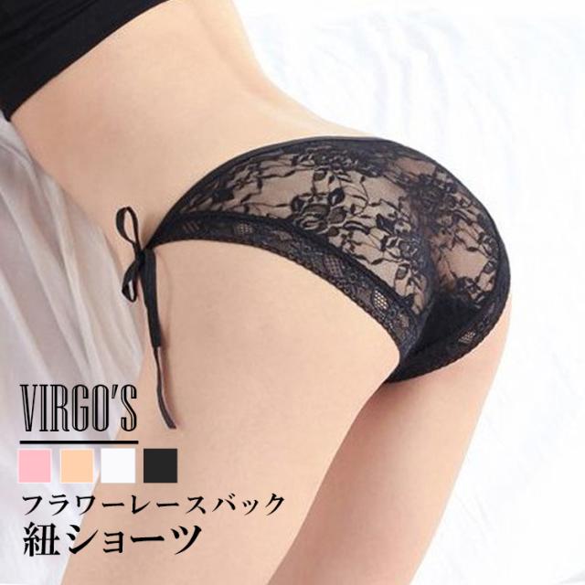 送料無料 VIRGOS リボン 総レース フラワー ショーツ 紐パン 単品 ショーツ レース リボン セクシー 可愛い レディース ランジェリー パンティ 透け 女性 下着
