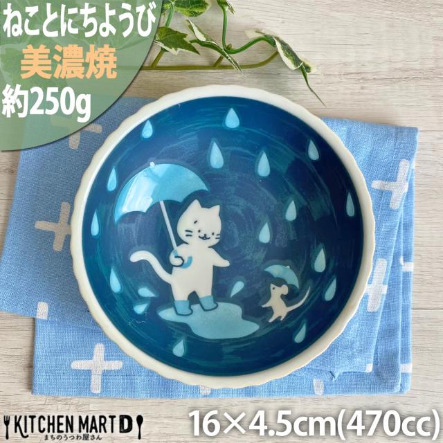 ねことにちようび 16.0cm 五〇鉢 深鉢 約250g 470cc 美濃焼 和食器 取り鉢 取鉢 ボウル 丸 猫 ネコ ねこ インテリア 猫好き かわいい おしゃれ プレート 鉢 国産 日本製 カネ定製陶 陶器 食器 食洗機対応 ラッピング不可