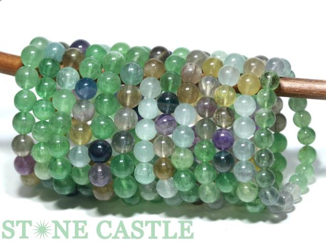緑、紫、オレンジ、黄、水色などマルチカラーのフローライトをブレスレット一本にまとめました。お得なパック売り商品です。