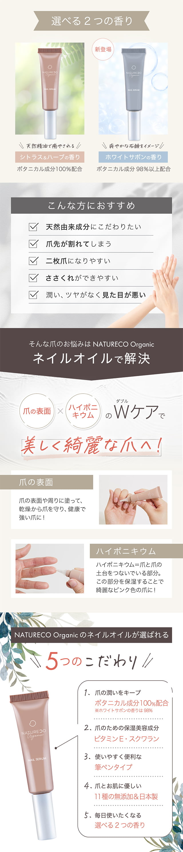 ボタニカル ネイルオイル 10ml NATURECOオーガニック ネイル ケア 爪 美容液 キューティクルオイル ネイルセラム 爪割れ 二枚爪 保護 補修