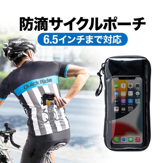 サイクルポーチ 防滴 スマホポーチ 小銭入れ ループフック ストラップつき[800-BYCP002]