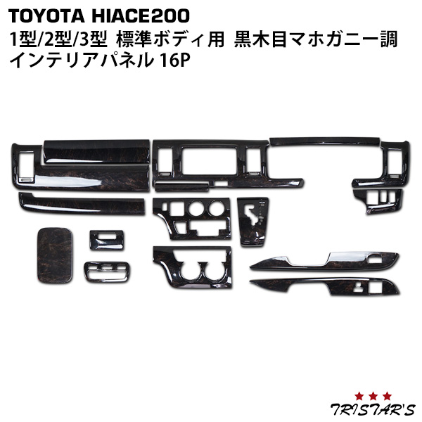 ハイエース 200系 1型 2型 3型 標準ボディ用 ダークプライム 黒木目マホガニー調 インテリアパネル 16P 268