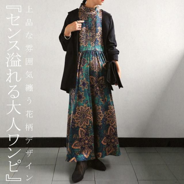 【検索ワード】花柄 フロントタックワンピース ワンピース レディース ロング 長袖 ボトルネック ハイネック 柄ワンピ 柄 タック ギャザー 切替え ハイウエスト 上品 華やか 高級感 光沢 総柄 ふんわり Aライン 体型カバー 裏地付き フォーマル 結婚式 二次会 パーティー オケージョン antiqua アンティカ 大人 おしゃれ 10代 20代 30代 40代 50代 60代 秋 冬 お洒落 カジュアル かわいい かっこいい あんてぃか