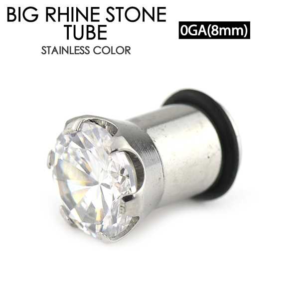 メール便 送料無料 ボディピアス チューブ BIGジュエル 0G(8mm) サージカルステンレス316L(医療用) クリア ラインストーン キラキラ アイレット イヤーロブ 0ゲージ┃