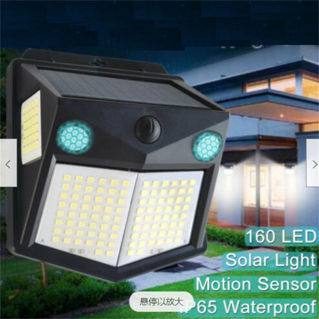 160LedソーラーパワーウォールライトPirモーションセンサーセキュリティ屋外ガーデンウォールランプ