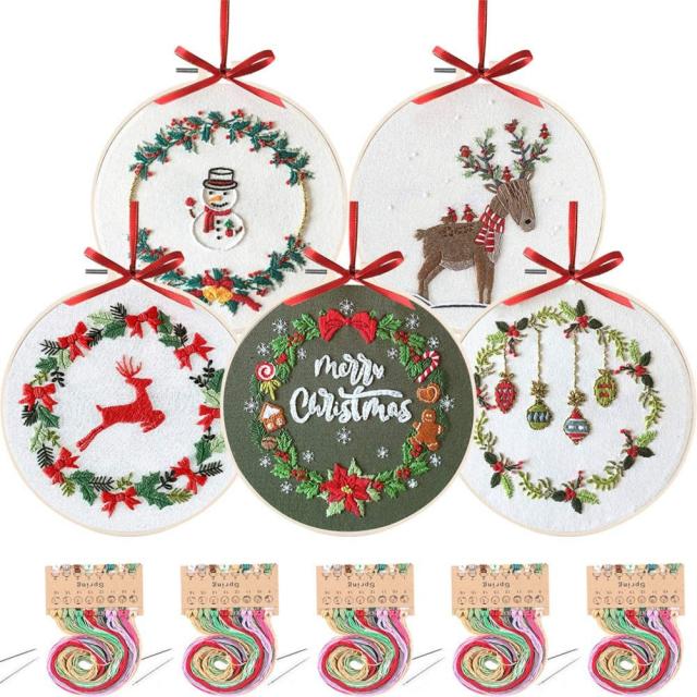 5本/セットクリスマス柄刺?DIYキットクロスステッチ素材セットフープ付き