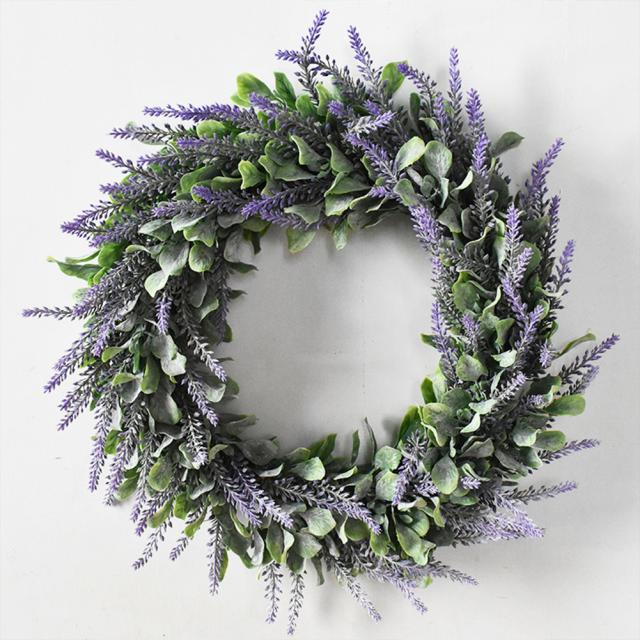 2.春の花輪は、ラベンダーの花と緑の葉でいっぱいのしっかりした花輪ベースで手作りされています。エレガントで快適な色と鮮やかで自然な形は、人々に芸術的なロマンスの感覚を与えます。