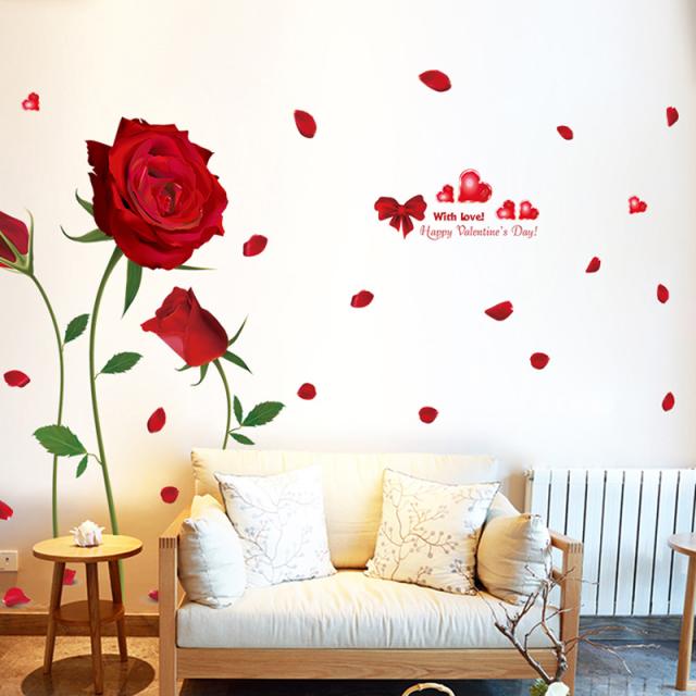 レッドローズパターンウォールデカール壁画リムーバブルフラワーステッカーアートバレンタインデーDIYのホームデコレーション