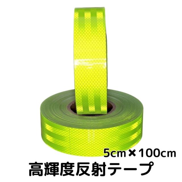 超高輝度反射テープ 5cm幅×100cm 蛍光イエロー 反射シール蛍光黄 高反射力テープ トラック自動車バイク自転車などに 夜間追突防止安全対策 リフレクター