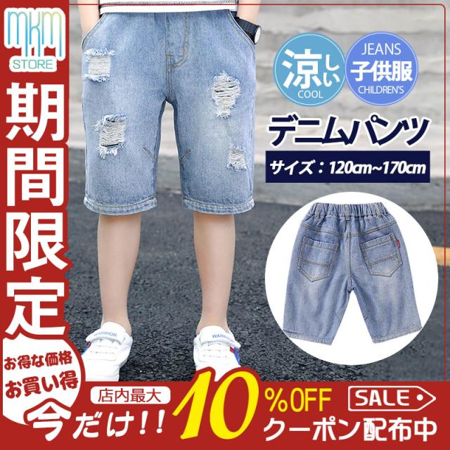 【水曜日まで!10%クーポン配布中】 子供服 デニムパンツ ダメージ ショートパンツ ハーフパンツ 男の子 ボトムス 半ズボン 涼しい 小学生 中学生 ジーンズ ズボン 男児 カジュアル
