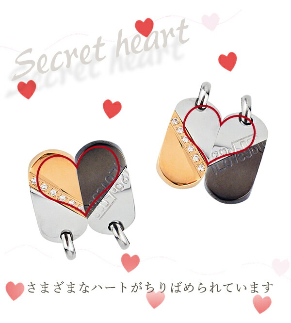 ペアネックレス ネックレス 128√e980 メッセージ ハート 秘密 シークレット 立体 刻印 名入れ 金属アレルギー 結婚記念日 妻 夫 両親 ピンク ブラック 黒 ペアペンダント メンズ レディース 男性 女性 カップル 2個セット ラッピング プレゼント ギフト つけっぱなし