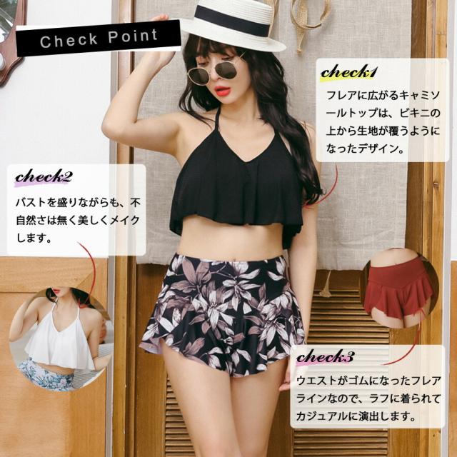 水着 レディース 体型カバー ビキニ バンドゥビキニ フリル フレアトップ 小胸 花柄 花柄水着 オトナ女子 無地 女性 ホルターネック ハイウエスト 上下別 大きいサイズ 韓国 フィットネス水着 ぽっちゃり カバーアップ セパレート 体系カバー 20代 30代 40代 50代 60代