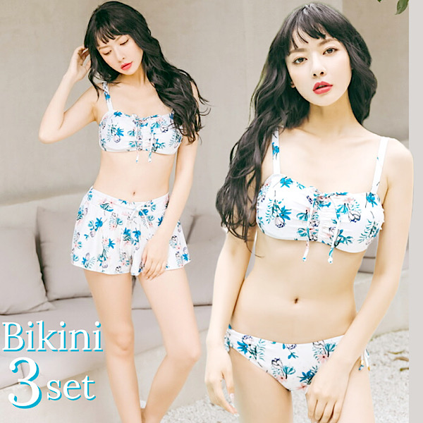 水着 レディース 体型カバー ビキニ 大きいサイズ 3点セット パッド付き セパレート ショートパンツ 花柄 ラッシュガード 小胸 盛れる女子 トレンド 韓国 シンプル フィットネス水着 花柄 ぽっちゃり カバーアップ 体系カバー 20代 30代 40代 50代 60代