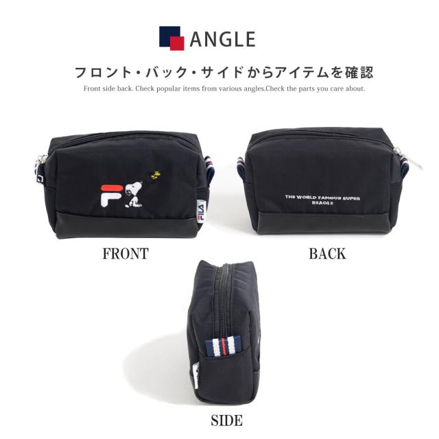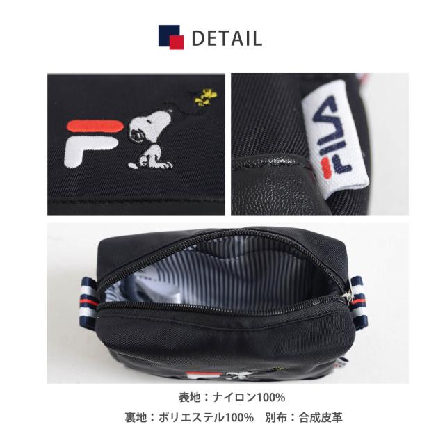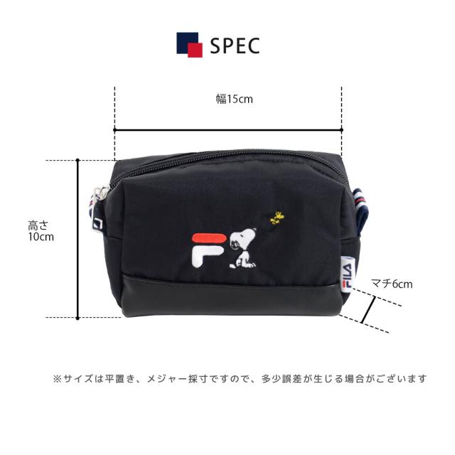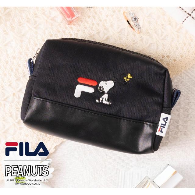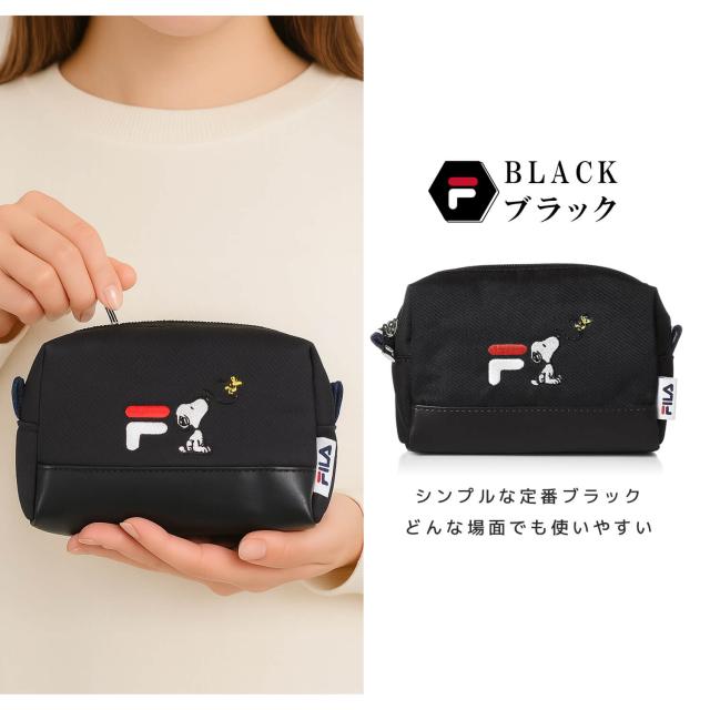 FILA フィラ スヌーピー ポーチ PEANUTS ピーナッツ コラボ 小物入れ 化粧ポーチ 女の子 レディース ワンポイント ロゴ刺繍 ブランド 韓国 おしゃれ カジュアル かわいい おでかけ 大人 通学 通勤 旅行 黒 ギフト ポイント消化