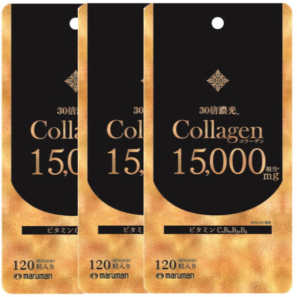 お得な3袋セットです。忙しいあなたに、美の贈り物。粒タイプで濃光30倍コラーゲン使用。コラーゲンの原料は、豚・魚などありますが、魚コラーゲンは豚コラーゲンの7倍分解率が高いと言われております。『コラーゲン15,000』は魚を原料としたコラーゲン(フィッシュコラーゲン)です。