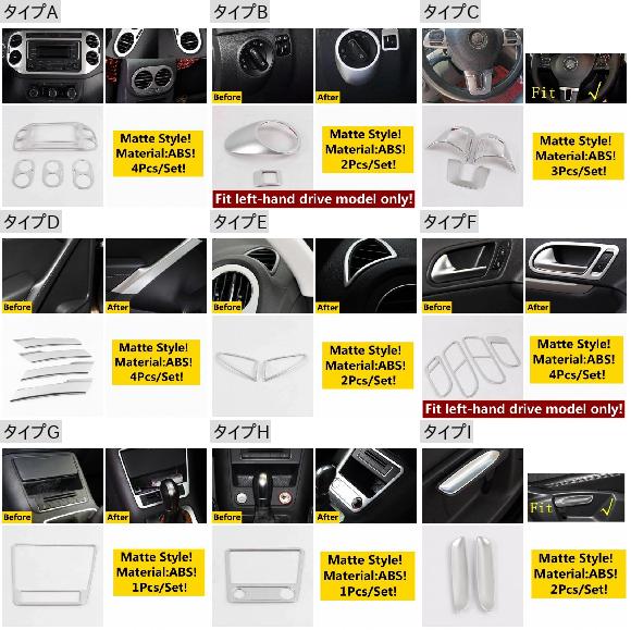 アームレスト ストリップ ハンドル ボウル エア AC 吹き出し口 ホイール ギア ヘッド ライト カバー キット トリム アクセサリー 適用: フォルクスワーゲン/VOLKSWAGEN VW ティグアン MK1 タイプB AL-OO-5222 AL