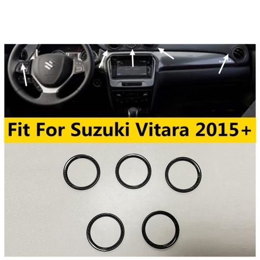 カーボン調 インテリア キット 適用: スズキ ビターラ 2015-2021 ダッシュボード エア AC 吹き出し口 リング カバー トリム 5 ピース AL-OO-5477 AL