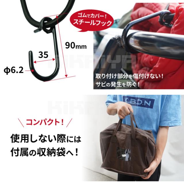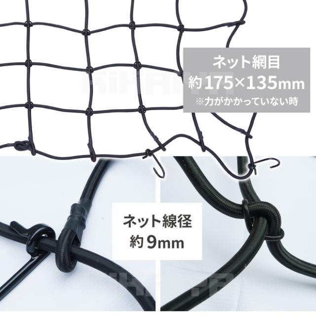 | 材質 | ネット:ゴム フック:スチール(ゴムカバー付き) |