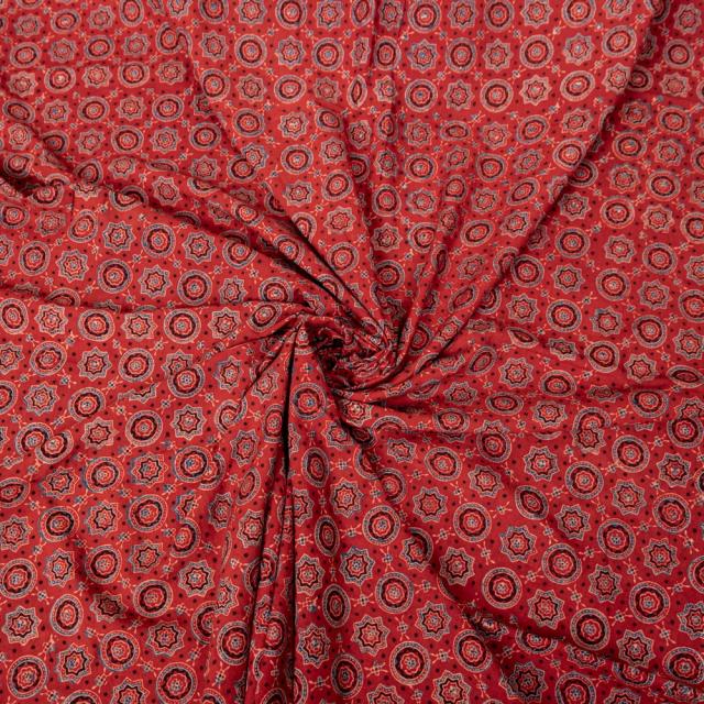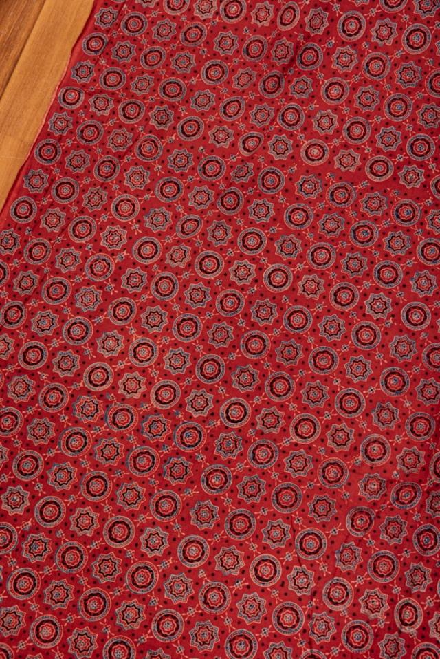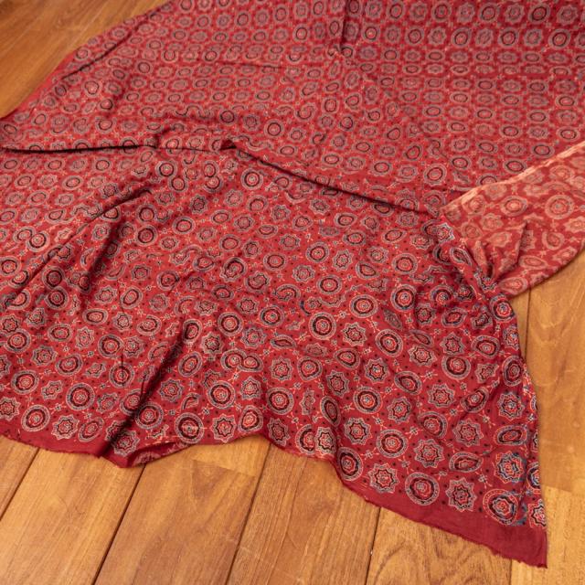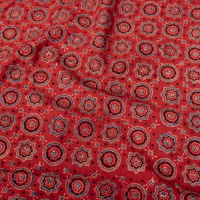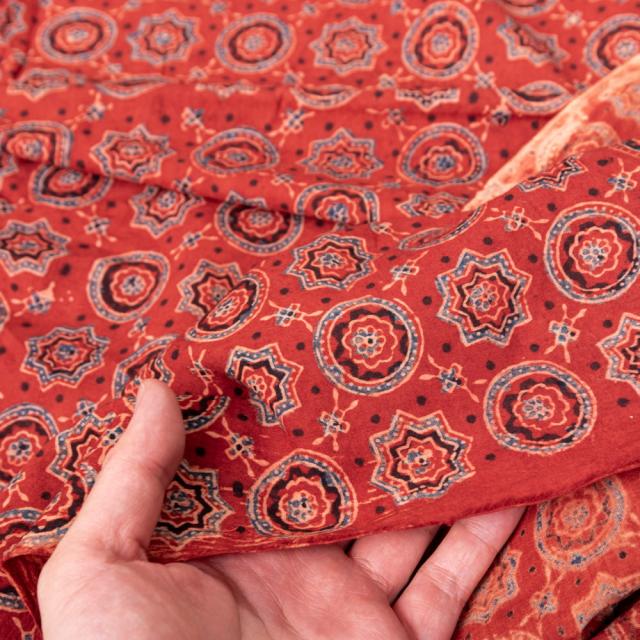 〔1m単位切り売り〕アジュラックプール村からやってきた 昔ながらの木版染めアジュラックデザイン布〔約107cm〕 レッド系 / 商用利用可 テーブルクロス おしゃれ 量り売り布 アジア布 手芸 インド アジアン コットン布 ファブリック エスニック