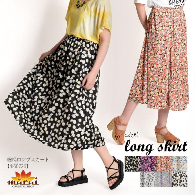 ロングスカート ロング ミモレ スカート 柄 総柄 フレア ボトムス スカート ロングスカート 膝下 ひざ下 大きいサイズ ゆったり rk60726 [値下]