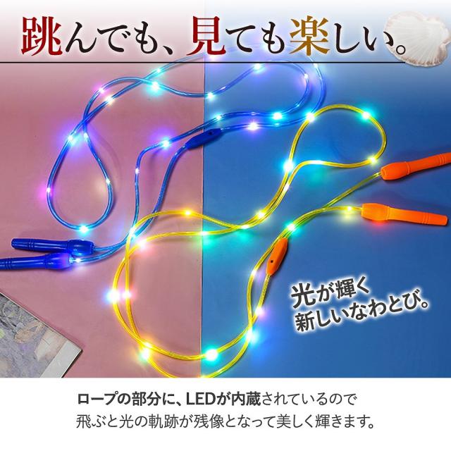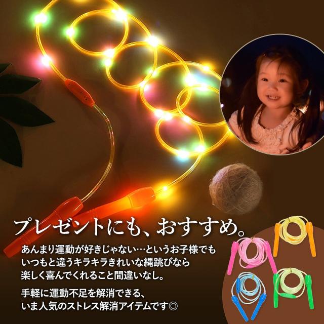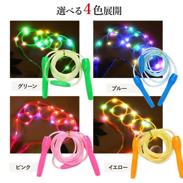 縄跳び なわとび LED 光る ライト 子供 小学生 運動会 初心者 人気 おすすめ スキップロープ ピンク ブルー イエロー グリーン 耐久性 丈夫 ダイエット agesugi_sog
