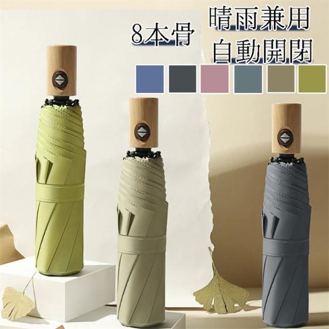 母の日 日傘 折りたたみ傘 自動開閉 大きめ 折り畳み傘 かわいい バンブーハンドル 日傘 おしゃれ ワンタッチ自動開閉 傘 頑丈な8本骨 撥水加工 耐強風 晴雨兼用 男女兼用 高強度グラスファイバー 収納ポーチ メンズ レディース 梅雨対策 シンプル