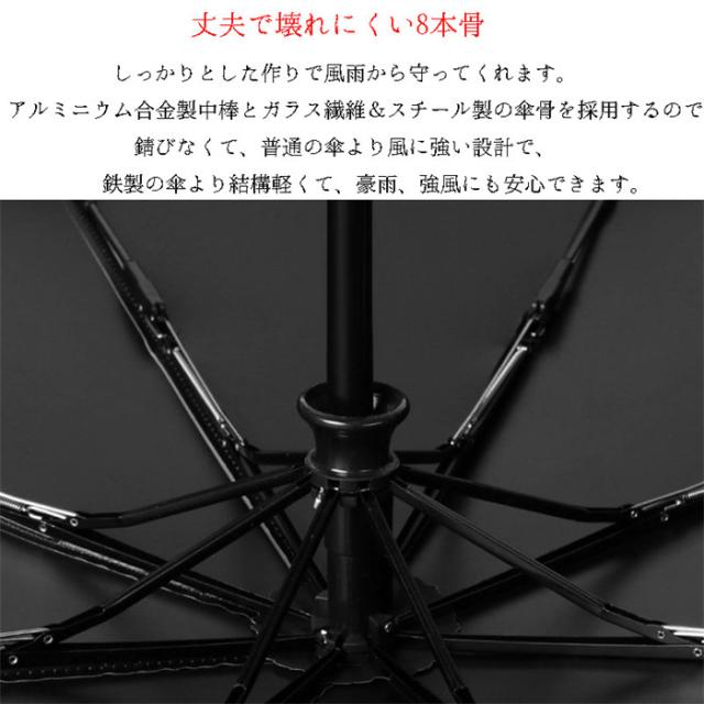 ★優れた耐風性:丈夫で壊れにくい8本骨!しっかりとした作りで風雨から守ってくれます。アルミニウム合金製中棒とガラス繊維&スチール製の傘骨を採用するので、錆びなくて、普通の傘より風に強い設計で、鉄製の傘より結構軽くて、豪雨、強風にも安心できます。