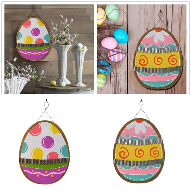 イースターの到着を祝うために、イースターエッグのパターンが付いたイースターホーム装飾ハンギングボードは、祭りの雰囲気を追加します。