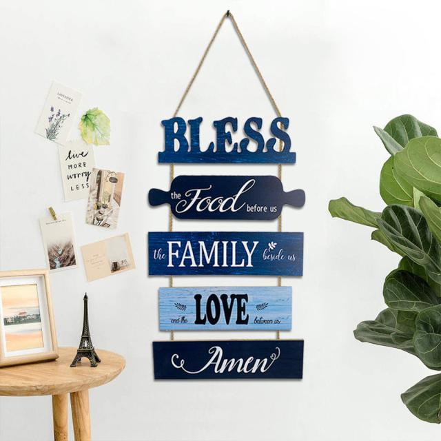 2.サイズの詳細:5つの異なる看板(祝福、食べ物、家族、愛、アーメン)を含む、キッチンの壁掛け看板があります。これは、家の玄関ポーチ、玄関、または飾る必要のあるその他のスペースを飾るサイズです。簡単にできます。みんなの注目を集める。