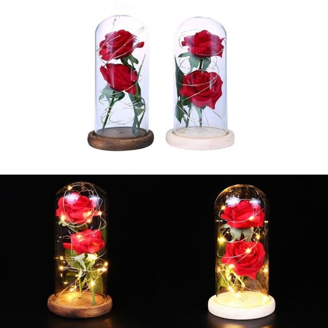 素材:ハンドルローズ+ガラスカバー+ウッドベース+ 20led銅ランプ